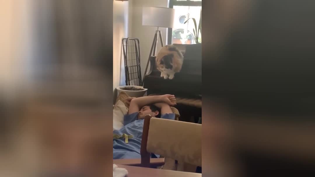 Кошачий оползень: кот внезапно сошёл на своего хозяина и ни капли не смутился