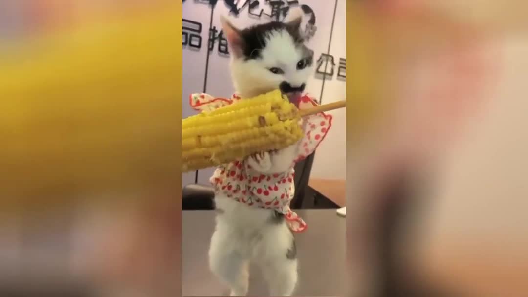 Кошка со странными гастрономическими пристрастиями попала на видео