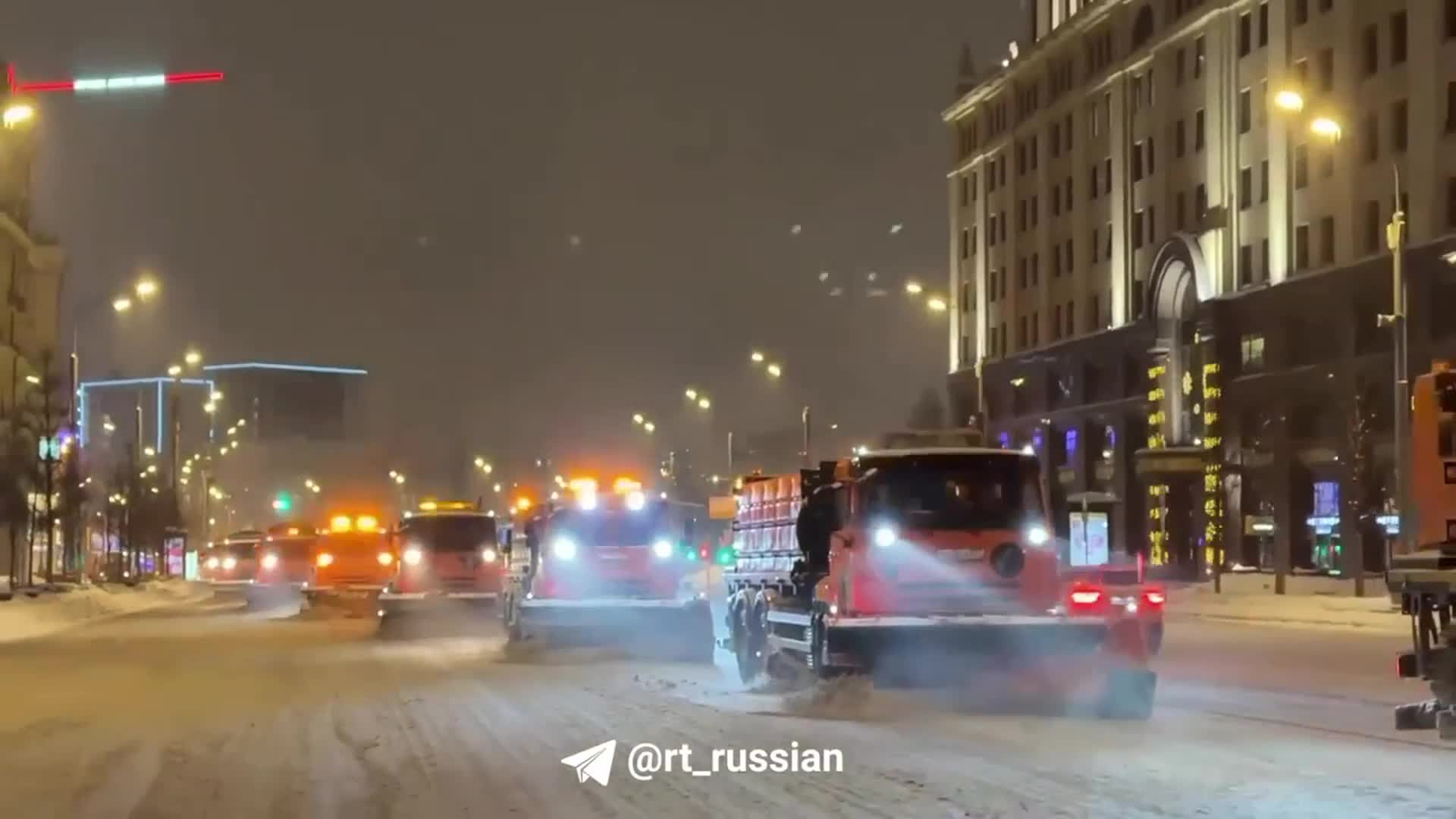 В Москве продолжаются усиленные меры по уборке снега из-за снегопада