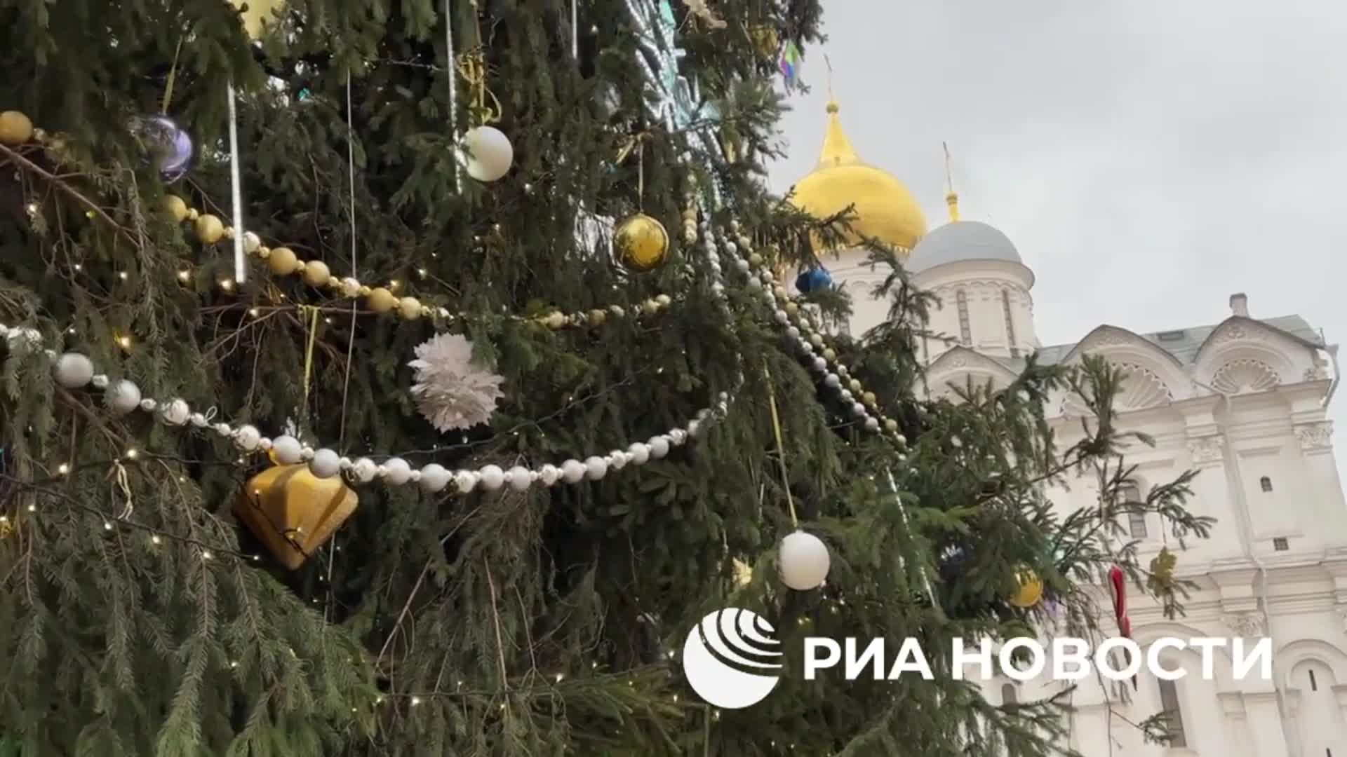 В Кремле главную новогоднюю ель России украсили игрушками и гирляндами