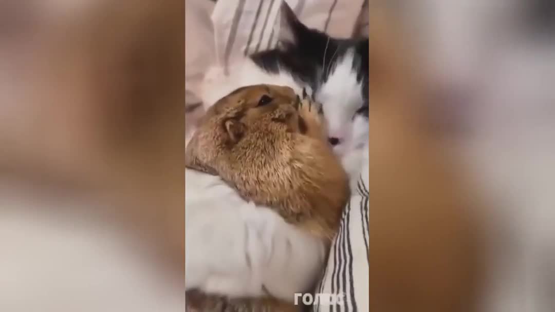 «Не отпущу»: обнимашки кота с сурком заставили Сеть вздыхать от умиления