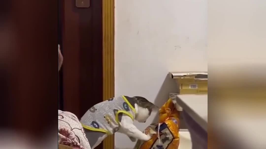 «Ух, я тебе устрою!»: кот затеял драку с мешком корма и рассмешил Сеть