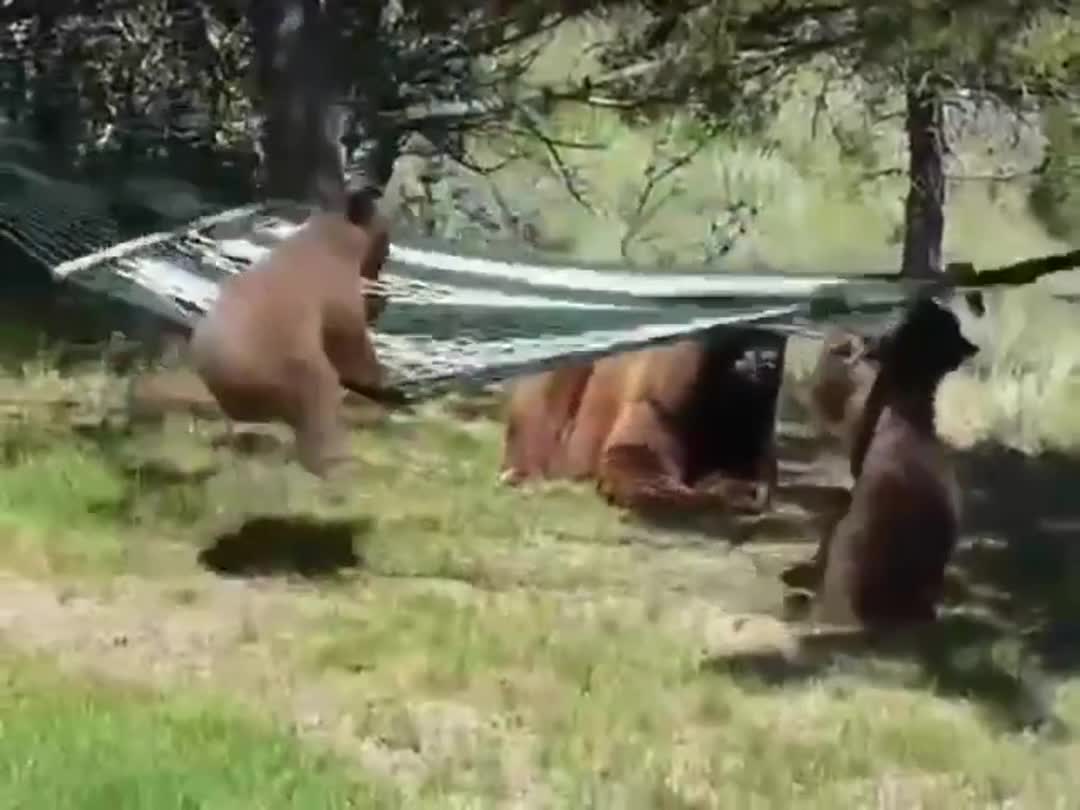 «Отдохнем по-человечески»: медвежата решили поваляться в гамаке