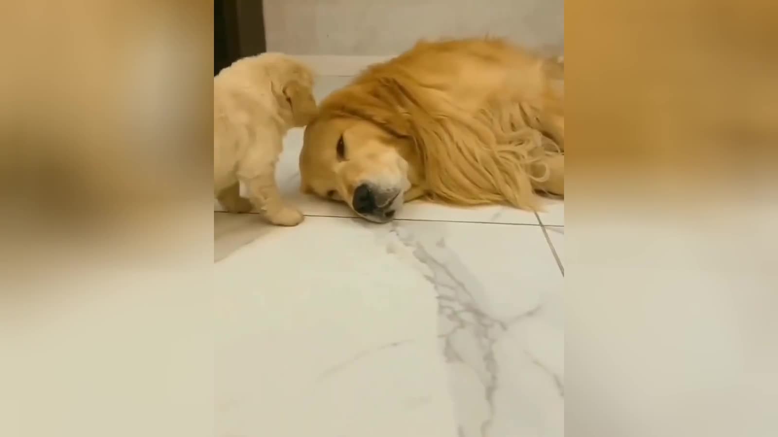 Когда оставили с детьми: уставший от щенков папа-ретривер попал на видео