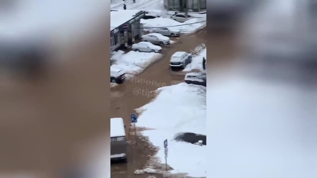 Telegram сообщил о прорыве трубы и затоплении двора в Химках