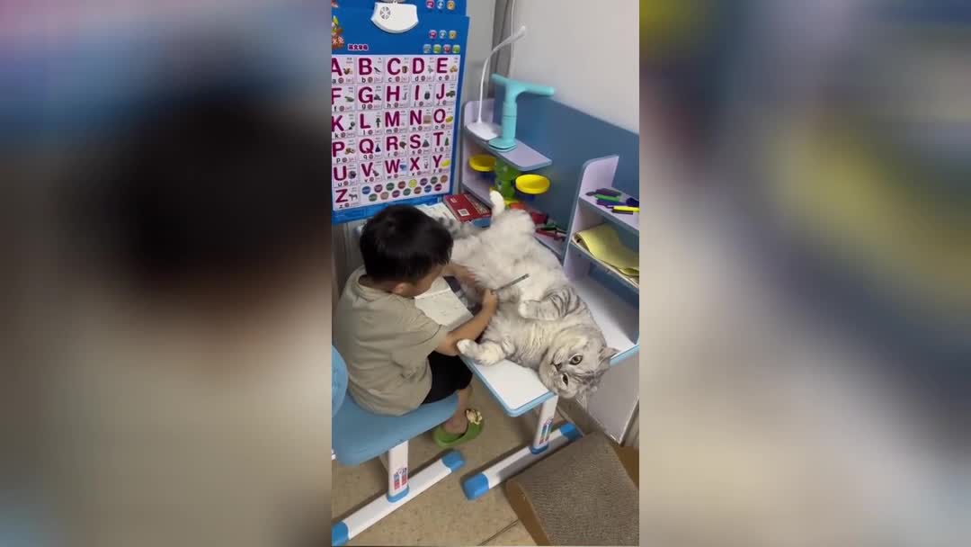«Да не нужно тебе это!»: кот, мешающий ребенку учиться, рассмешил Сеть