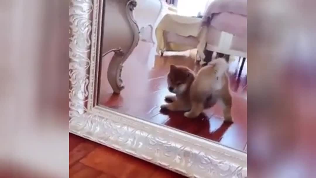 Впервые увидевший свое отражение щенок влюбил в себя интернет