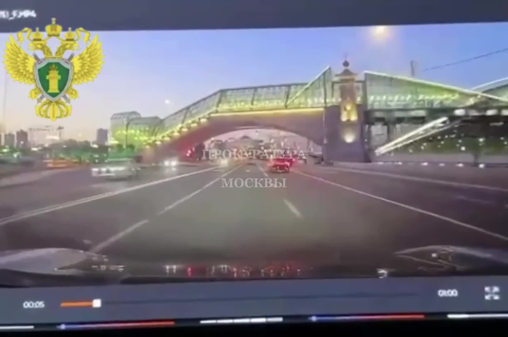 Опубликованы кадры с видеорегистратора в момент ДТП на набережной в Москве