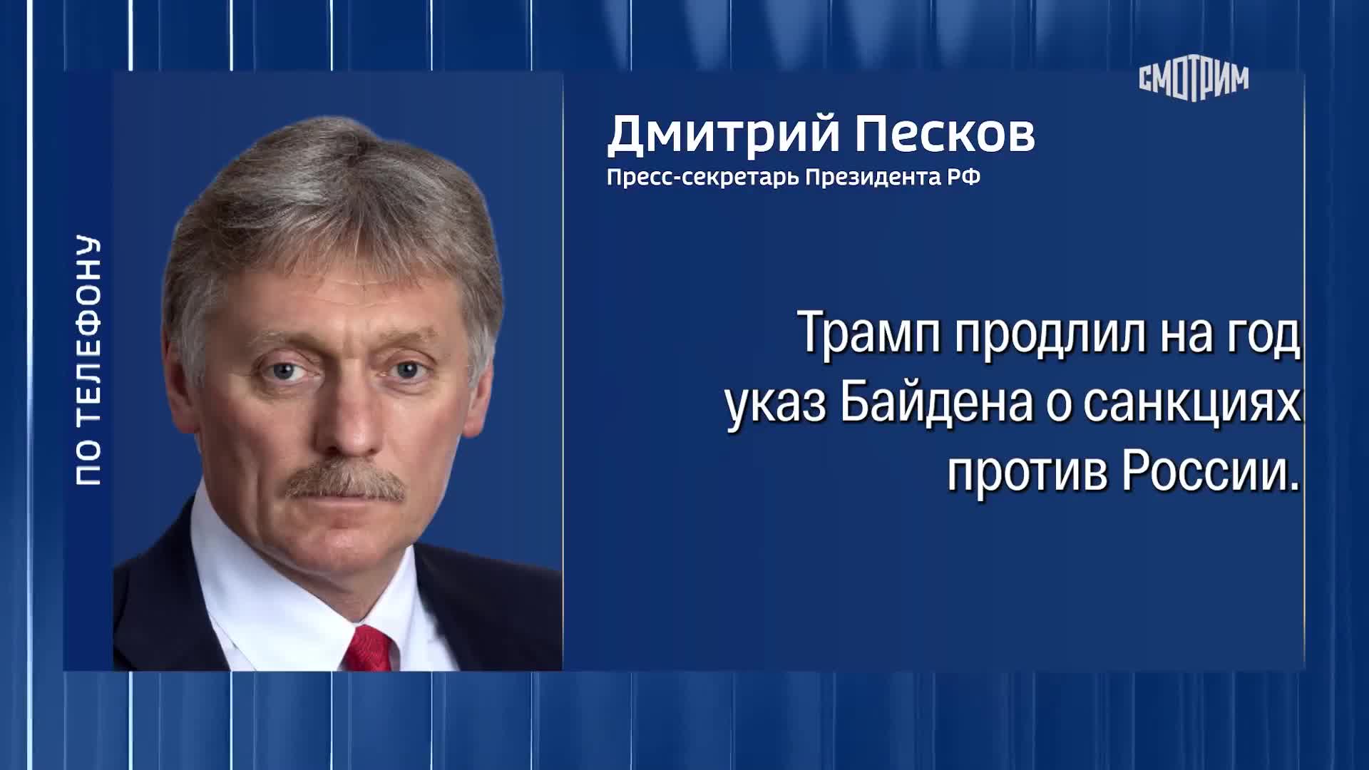 Песков: у России не было завышенных ожиданий насчет американских санкций