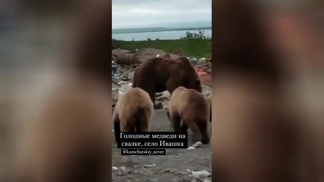 Голодные медведи на сельской свалке пугают жителей