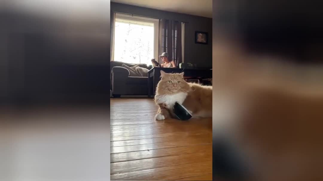 «Корми меня»: наглый кот с миской продолжает доставать хозяйку