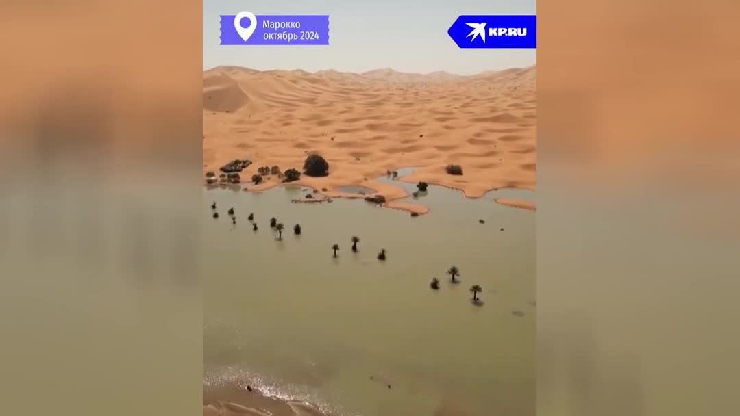 В пустыне Сахара из-за чрезвычайно редких проливных дождей образовалось озеро