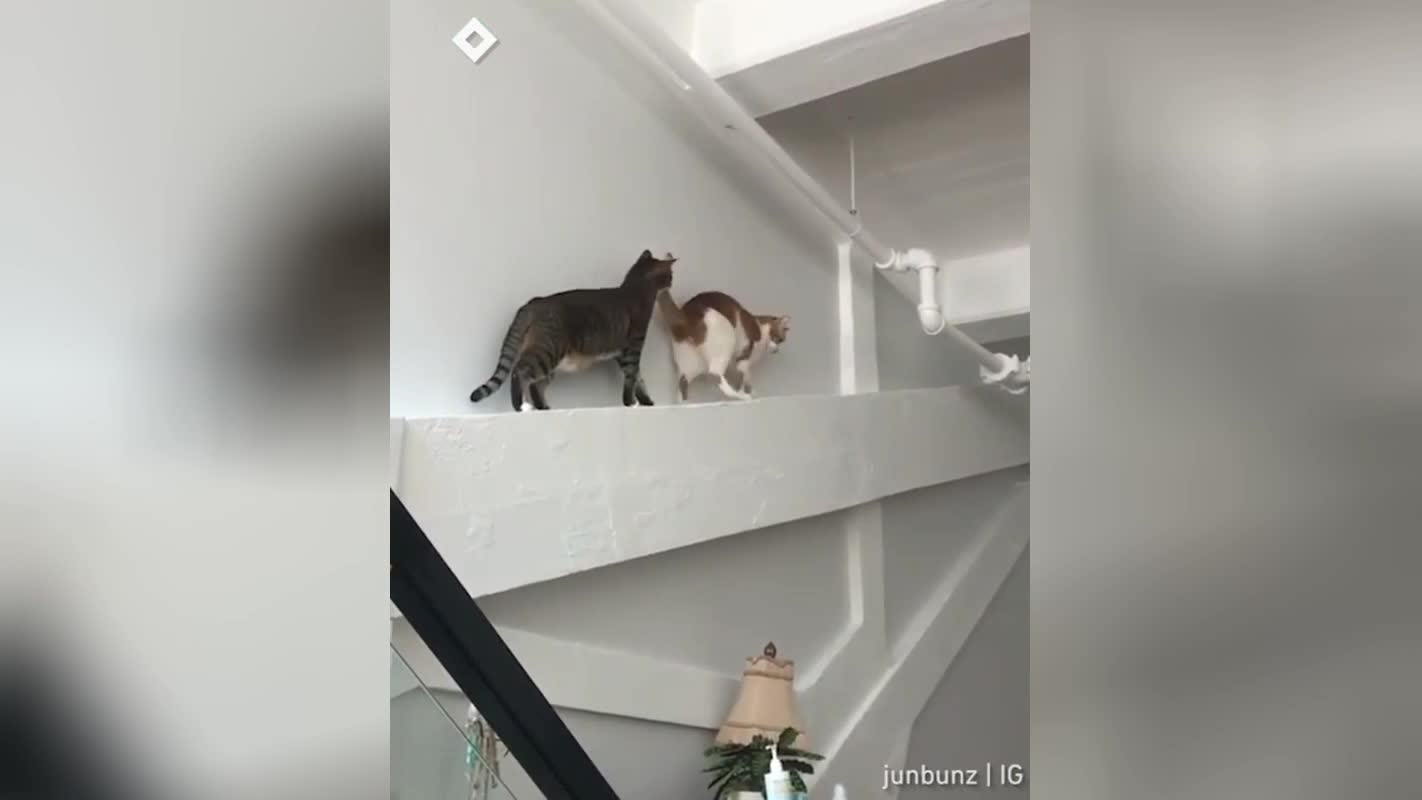 Отмена миссии: загнавший себя в тупик кот смутил сородича и рассмешил Сеть