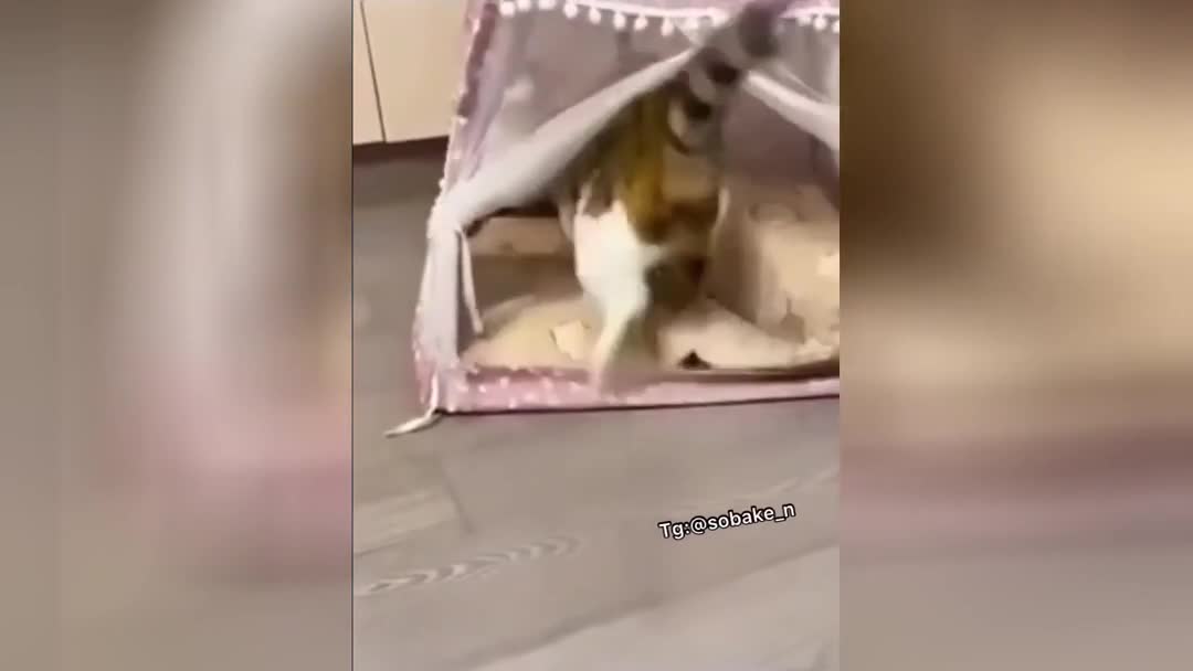 «Рейдерский захват»: эпичная битва кошки и пса за домик попала на видео