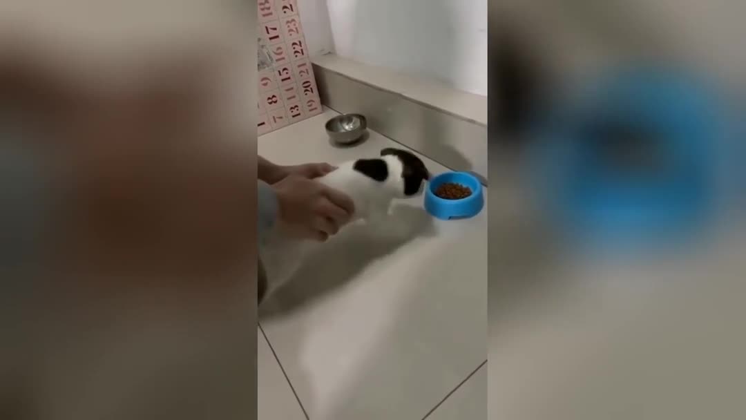 «Еда-еда»: неловкие попытки щенка добежать до корма развеселят любого
