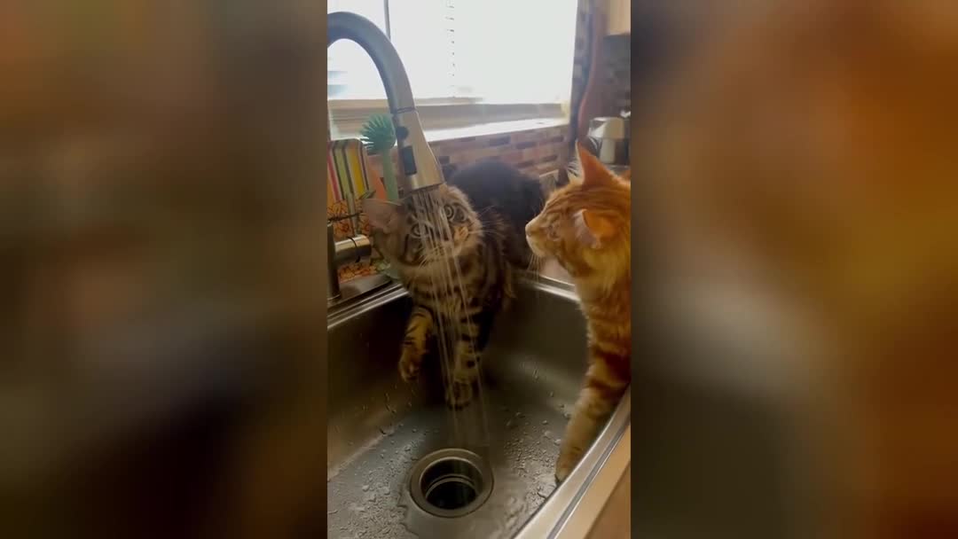 «Это что такое»: ошарашенные водой из-под крана котики рассмешили Сеть