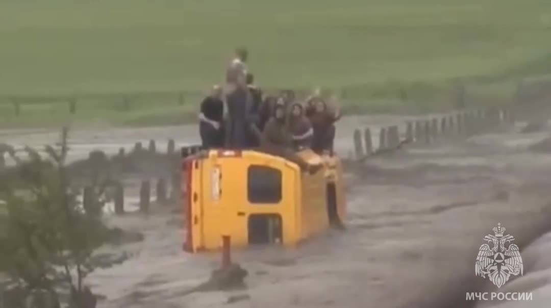 В Северной Осетии микроавтобус смыло с трассы потоком воды