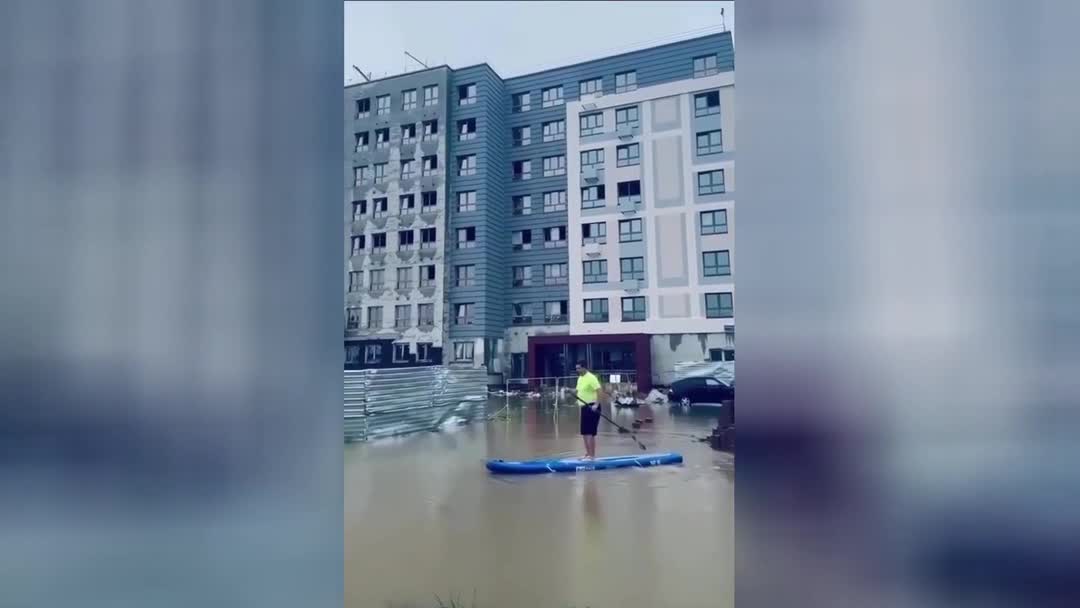 Плавание на сапборде по улицам Москвы